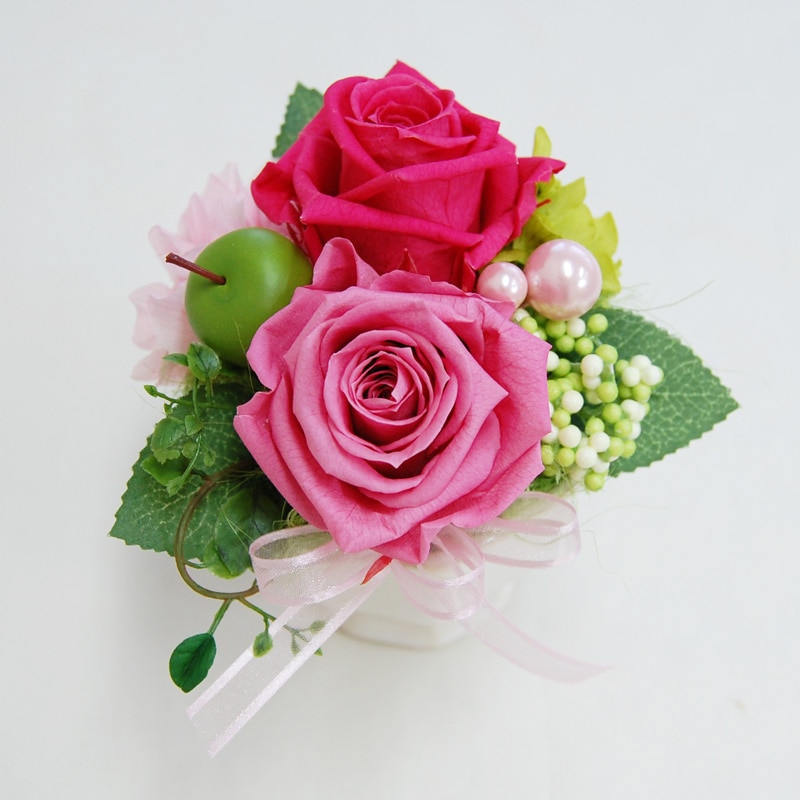 プリザーブドフラワーとは生のお花を特殊な技術で加工した新しいスタイルのお花です。枯れることがなく、フレッシュなままの柔らかな風合い、美しい色合いを長く楽しむことが出来ます。水やり・水換えなどのお世話の必要がなく、アレルギーの原因となる花粉やにおいもありません。保存状態が良ければ1〜2年はみずみずしく咲き続けます。